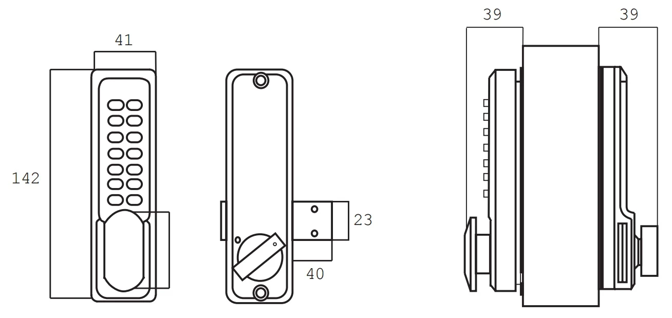 Dit mechanisch codeslot van DX wordt geleverd met montage instructie en bevestigingsmateriaal. Het slot is geschikt voor deuren van 35 tot 55 mm deurdikte. Er zijn 8000 mogelijke cijfercombinaties en de code is gemakkelijk te herprogrammeren door middel van schroefknoppen op de achterplaten. Daarnaast is het slot spatwaterbestendig. Het slot heeft een ingebouwde dagschoot met automatische vergrendeling.