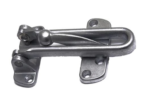 Staal, mat verchroomd. Voor naar binnendraaiende deuren en ramen. Opleg veiligheidsmodel, kan niet van buitenaf worden geopend. Links en rechts bruikbaar. Compleet met schroeven.