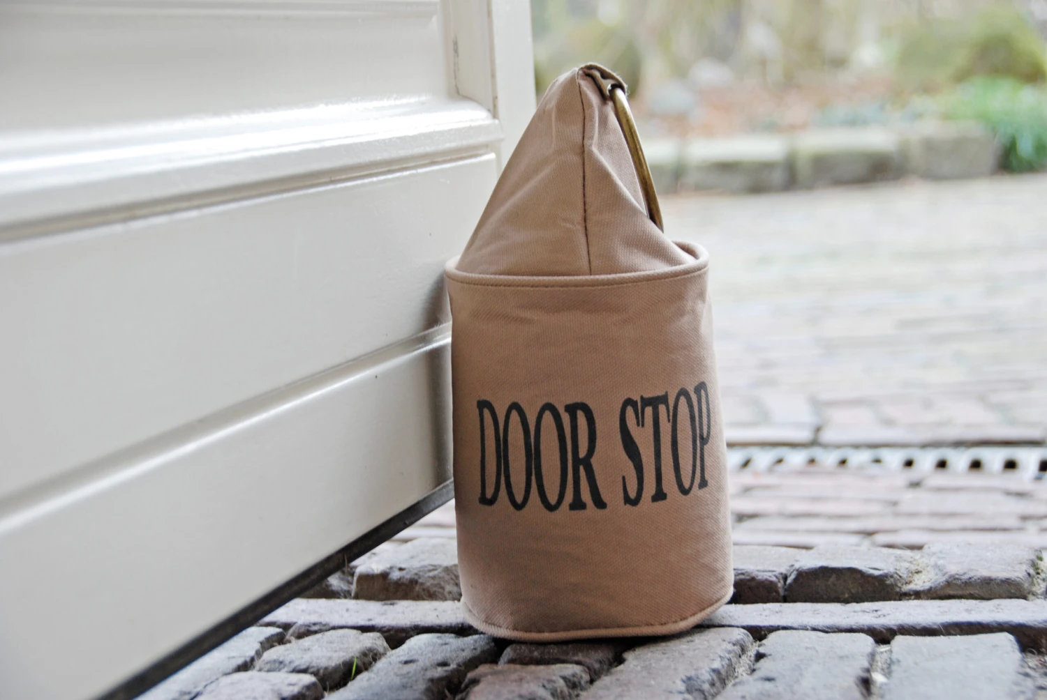 Nooit meer dichtslaande deuren, dankzij deze functionele textiele deurstopper in klassiek design. De deurstopper is eenvoudig te verplaatsen middels de grote metalen ring aan de bovenzijde. Door de materiaal keuze ontstaan er geen krassen op deuren en vloeren.
