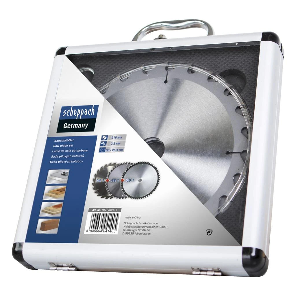 De Scheppach zaagbladenset Ø210 mm is geschikt voor de Scheppach afkortzaag 8 HM80L en HM80MP. Deze set bestaat uit: