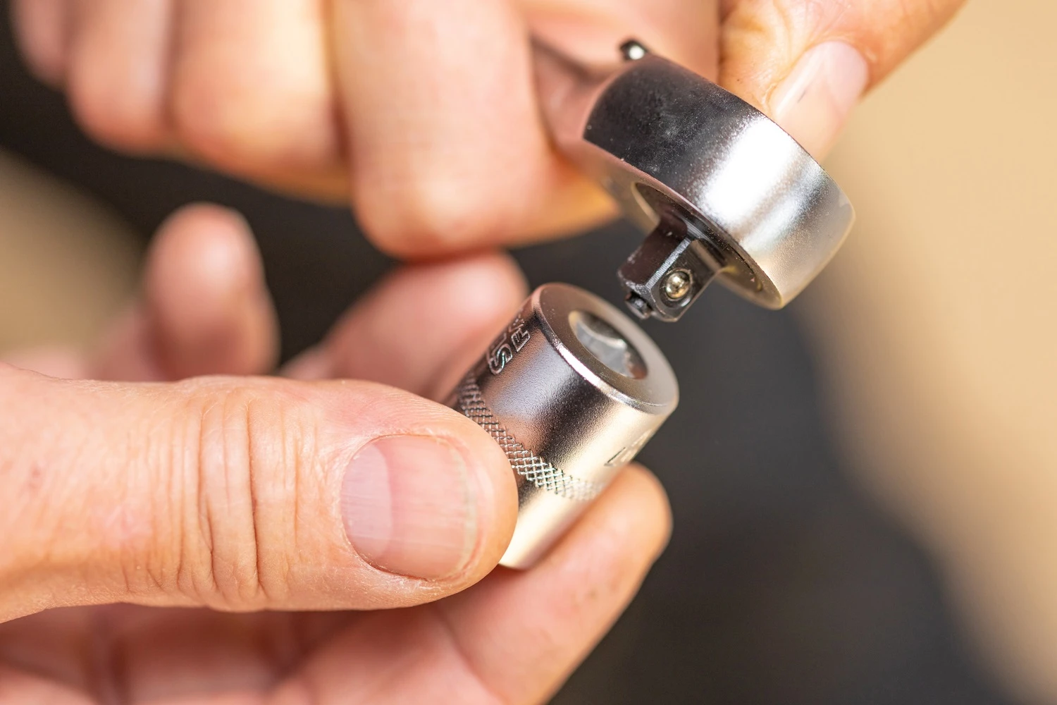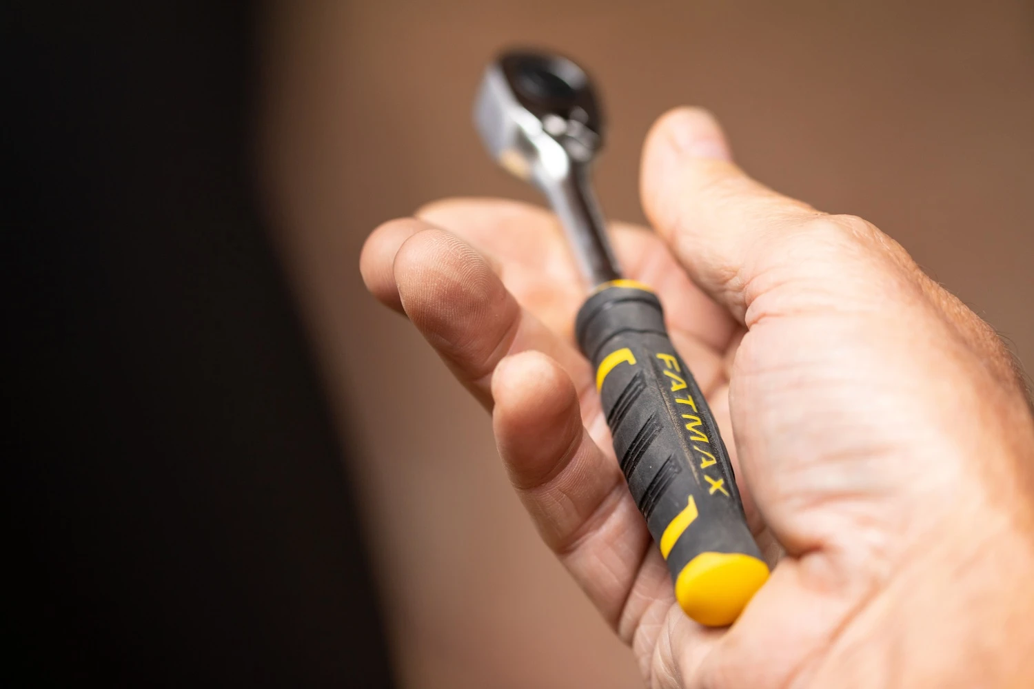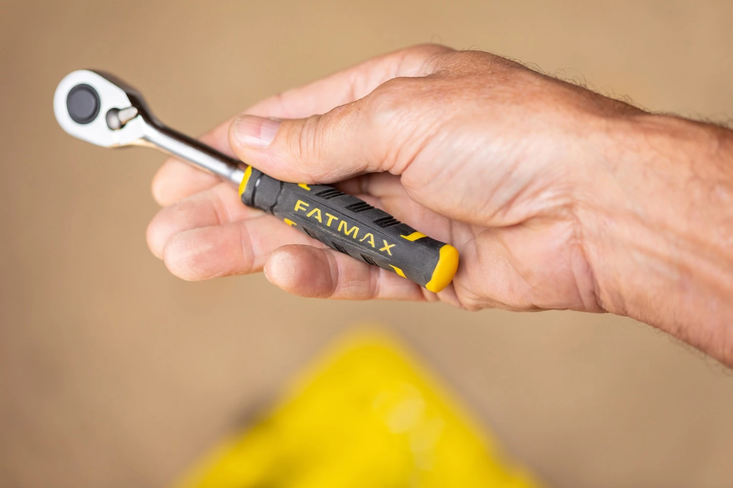 De nieuwe FATMAX® ratel met 120-tanden mechanisme verdubbelt de capaciteit om te werken in krappe ruimtes in vergelijking met een traditionele 60-tanden ratel. Het Quick Release mechanisme maakt t mogelijk om doppen snel los te maken. De lage omkeerhendel voorkomt onbedoelde bewegingen en maakt bediening met één hand mogelijk