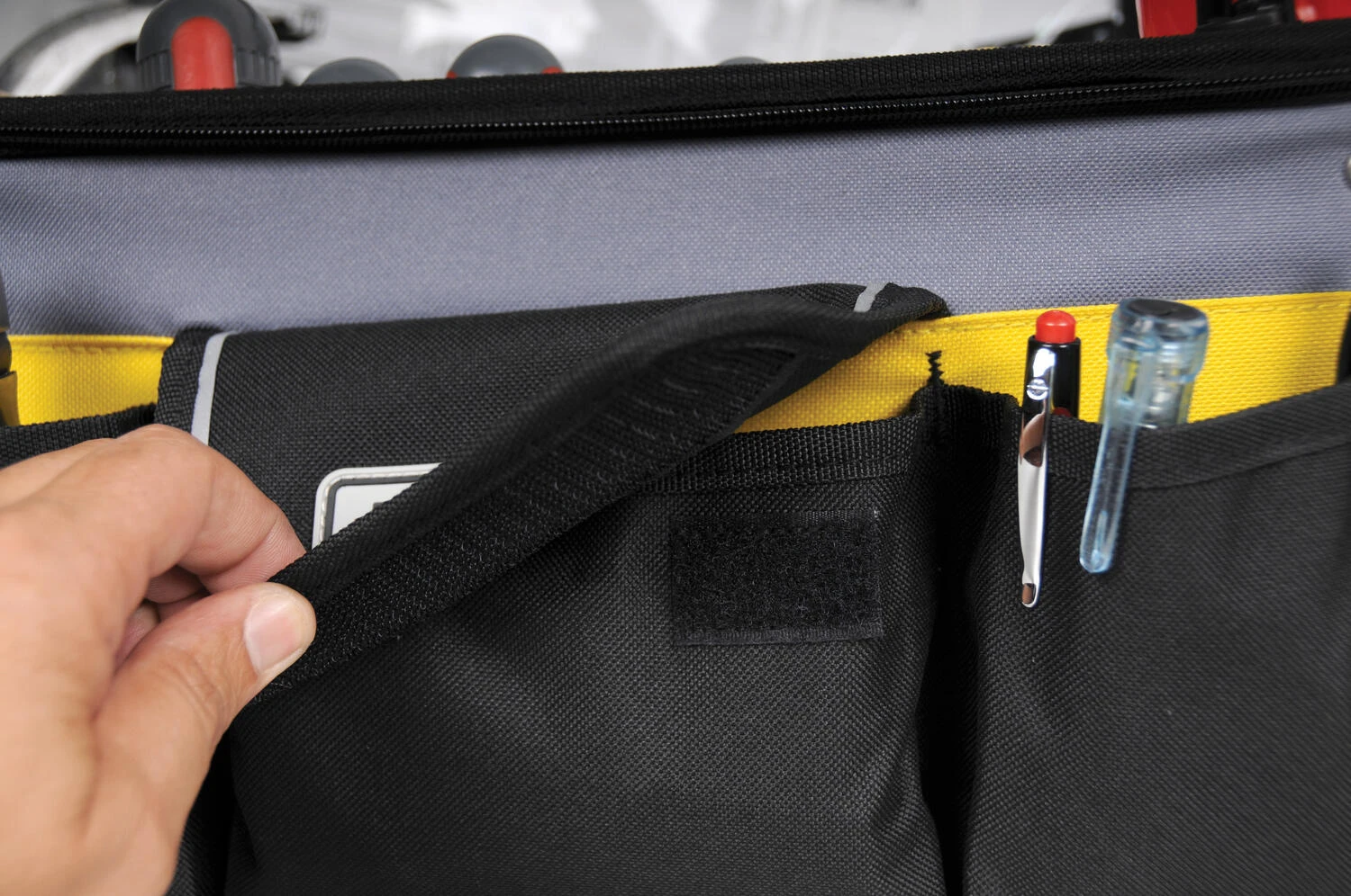 Deze Stanley gereedschapstas maakt het mogelijk om je gereedschap op te bergen maar ook te vervoeren. Door de verstelbare schouderriem is vervoeren fijn en gemakkelijk. Met de buitenzakken is er maximale opbergcapaciteit gecreëerd. Door de verstevigde kunststofbodem zal de tas niet zomaar omvallen en is hij extra stevig. De tas heeft in de bovenkant een transparante documenthouder, die erg handig is om belangrijke papieren voor de hand te houden.
