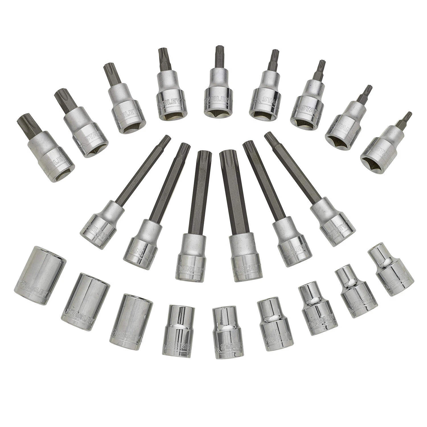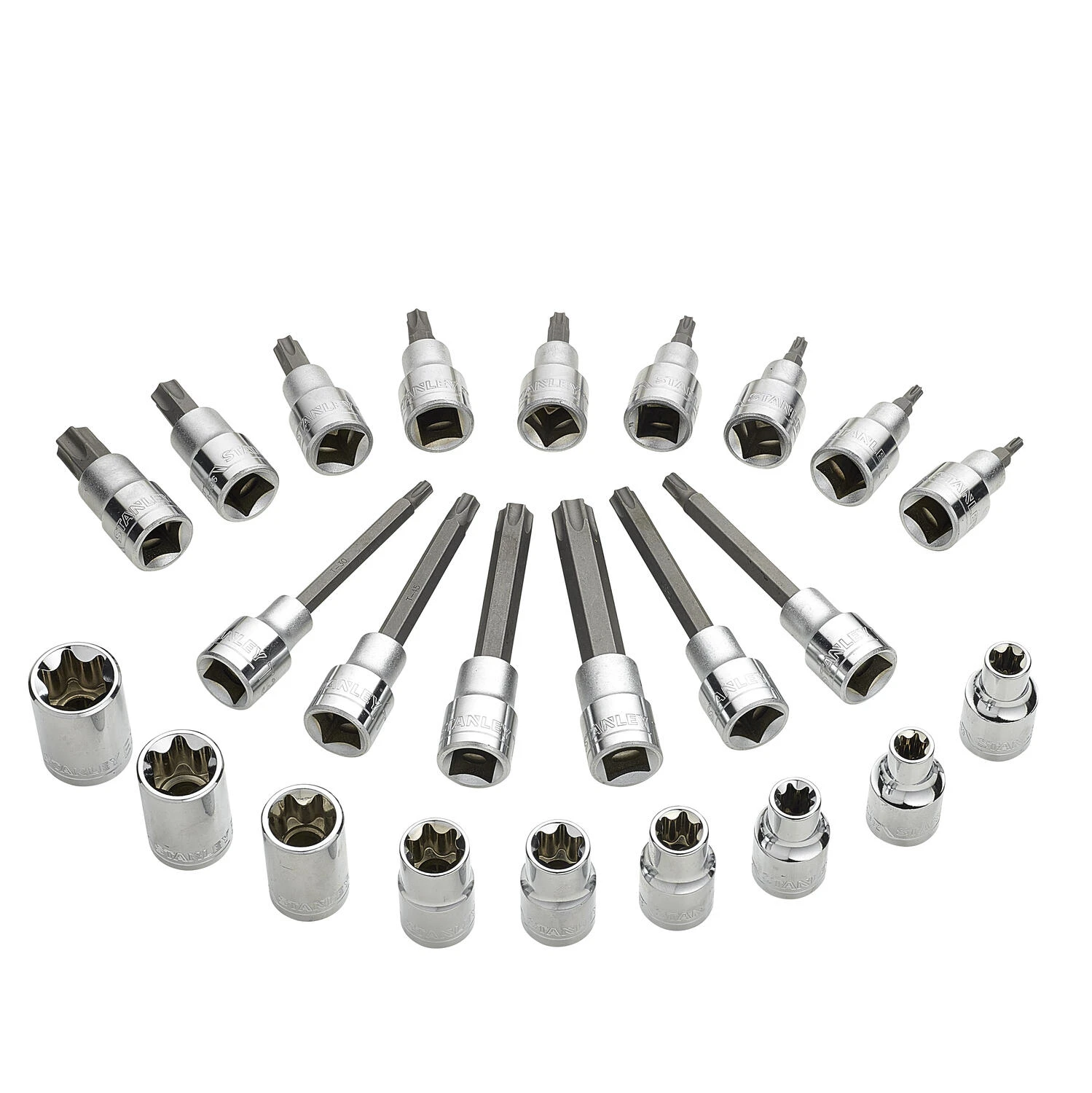 - 9 Torx dopbits: T20, T25, T27, T30, T40, T45, T50, T55, T60
