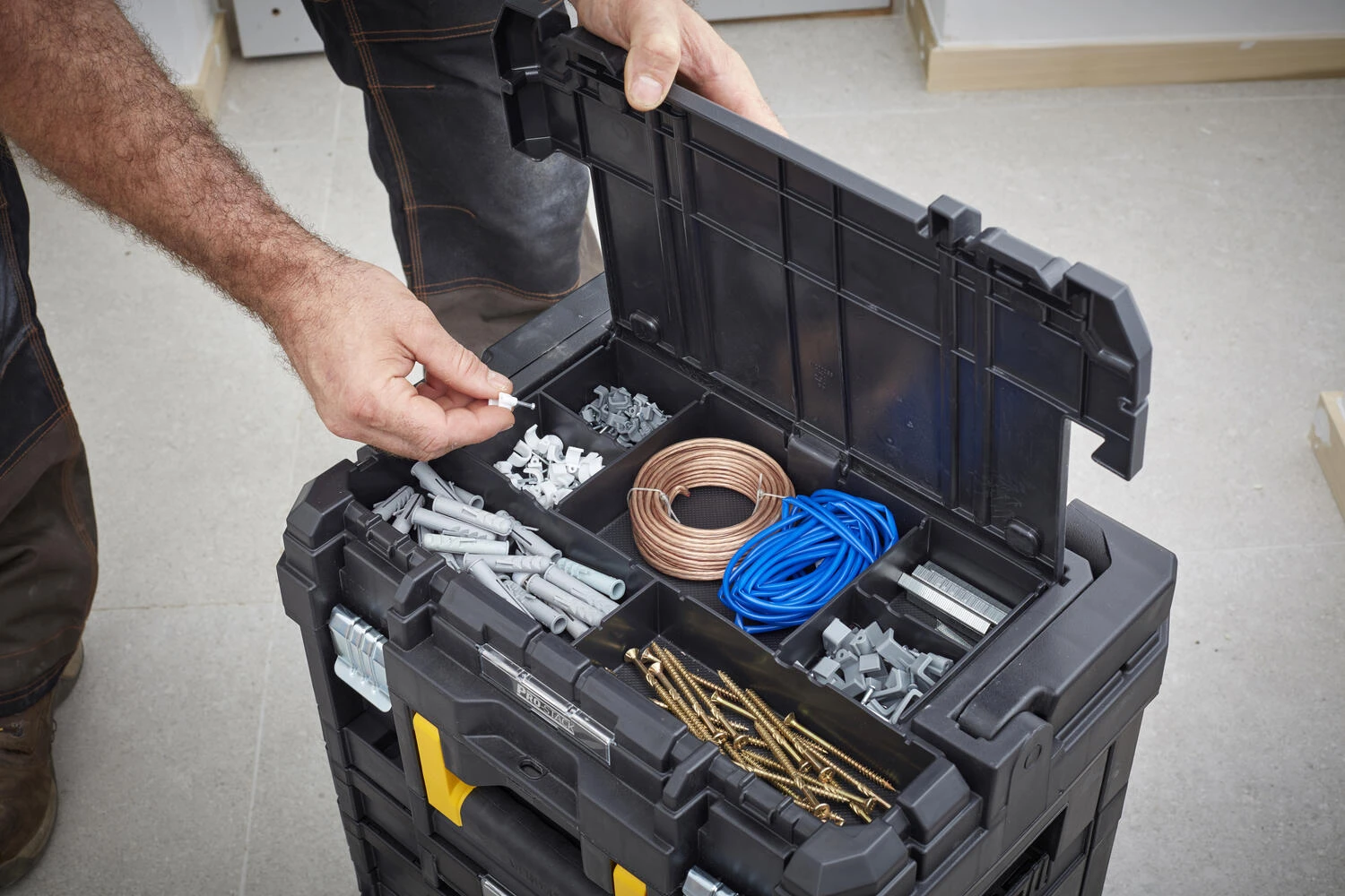 Deze Stanley Tstak is geschikt voor het transport van kleine elektrische gereedschappen en handgereedschap. Met een draagvermogen van 30kg kan deze koffer een boel hebben. De koffer is uitgerust met schuimrubber waardoor u met een mesje de perfecte vorm kunt uitsnijden, hierdoor zal het gereedschap niet geschud worden en is het extra veilig. De deksel bevat een organizer met 7 compartimenten.