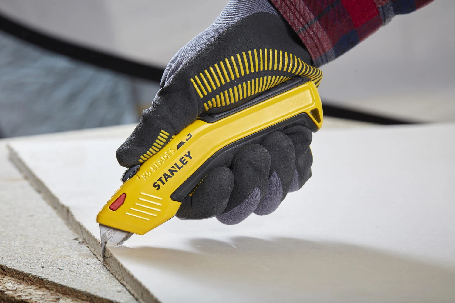 Deze uitschuifbare Stanley mes, heeft een automatische toevoer van nieuw reservemesjes. Trek gewoon het gebruikte mes eruit, trek het mes naar achteren en laad een nieuw, scherp mes op. De mesjes worden geladen vanuit het magazijn in de handgreep, deze kan tot 5 reservemesjes bevatten.