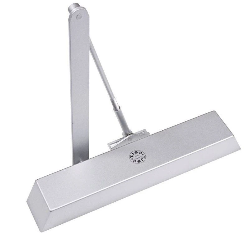TJSS T44 deurdranger met schaararm, grootte EN 2-5, brandveilig getest volgens DIN EN 1154. Universeel toepasbaar voor DIN links en DIN rechts draaiende deuren. Met automatische openingsdemping. Constante sluitsnelheid door thermo-stabiel regelventiel. Vereenvoudigd instellen door koppeling van sluitsnelheid en openingsdemping in één ventiel. Standaard fabrieksgarantie van 5 jaar.